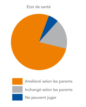 Selon les parents, l’état de leur enfant est amélioré dans 77 % des cas, inchangé pour 6 % et le reste des parents ne peut juger (pour 17 %).