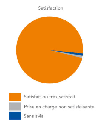 Après analyse des enquêtes de satisfaction sur les 3 dernières saisons de gardes, il en ressort que le taux de satisfaction général est de 98 % (très satisfait ou satisfait), 1 % estime la prise en charge non satisfaisante et 1 % sans avis.